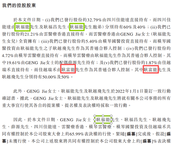 目前,好医生云医疗仍由耿氏家族牢牢掌控。IPO前,耿福能及其家族成员通过多家实体合计控制约65.99%的股权与投票权。