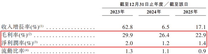 更值得注意的是毛利率的下滑,毛利率从2023年的29.9%降至2025年的22.9%,呈持续走低趋势。