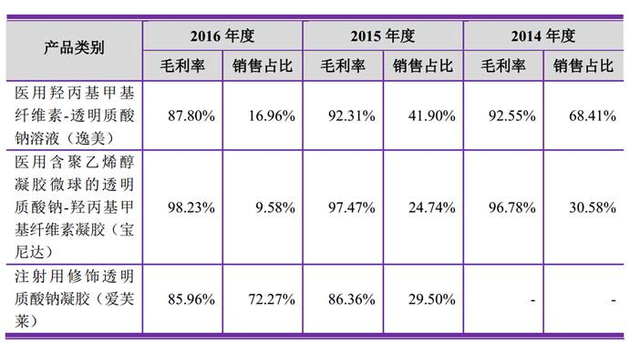 招股说明书显示,爱美客2016年综合毛利率87.19%,宝尼达单品毛利率更高达98.23%。