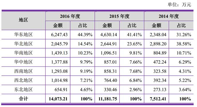 从销售地区分布上来看,来自华东地区的营业收入最高,其次是华北地区。这与华东地区、华北地区经济发展水平较高,医疗美容市场发展迅速相关。