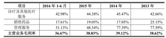 毛利率方面,2013-2015年,康宁医院的综合毛利率为38.75%、38.98%、38.06%。