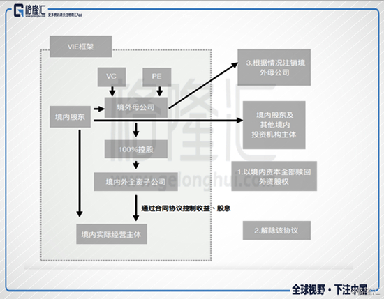 所谓VIE(VariableInterestEntities),即可变利益实体,又称为协议控制,其本质是境外上市主体(一般为离岸中心注册的壳公司,如开曼群岛等地)在中国境内的全资子公司通过一系列的协议安排,设定与中国境内持牌实际运营实体之间的控制与被控制关系。国内的运营实体将所有的债务和权益转移给在境内的外资子公司,以换取其“服务和技术”,从而使得境外上市主体在没有控股关系和所有权的情况下,实质上享有国内运营实体的经济利益,并得以实现合并财务报表。
