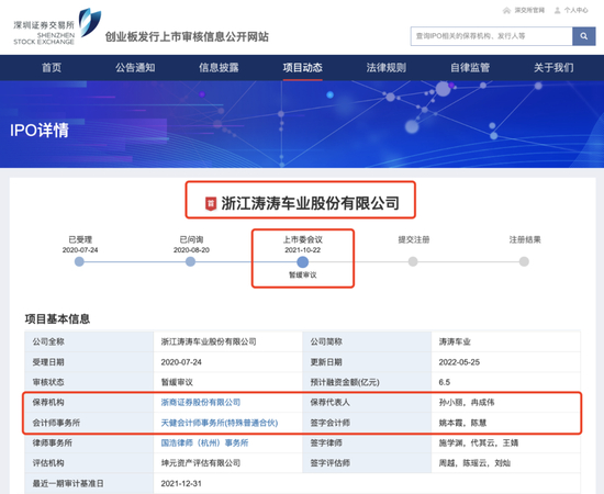 涛涛车业二次闯关IPO保荐机构为浙商证券股份有限公司(以下简称“浙商证券”)、保荐代表人孙小丽,冉成伟。会计师事务所为天健会计师事务所(特殊普通合伙)、签字会计师、姚本霞,陈慧。财经公关为深圳微象投资顾问有限公司。