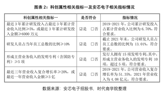 时代商学院认为,安芯电子涉嫌突击申请发明专利的动机,或与科创板的上市要求有关。“科创属性相关指标一”中规定形成主营业务收入的发明专利(含国防专利)需≥5项,安芯电子声称其形成主营业务收入的发明专利达10项,符合要求。但实际上若无2020年及2021年新增的8项专利,安芯电子大概率无法满足该要求,其突击申请专利具有合理动机,而这些疑似临时抱佛脚申请的专利,其含金量存疑。