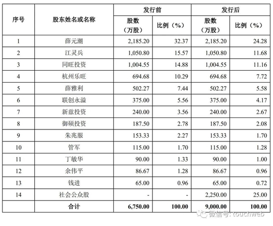 IPO后,薛元潮持股为24.28%,江灵兵持股为11.68%,薛雅利持股为5.58%,联创永溢持股为5.56%,新兹投资持股为3.56%;