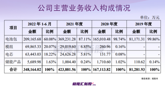 报告期内,电池包业务是公司最大的收入来源,但其营收占比呈下滑趋势,目前营收占比在60%以上;模组和电芯业务的营收占比提升较快,储能产品营收占比较低。