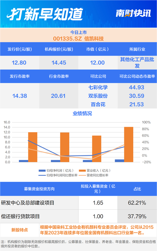 有一只新股上市,为深证主板的信凯科技(001335.SZ)。