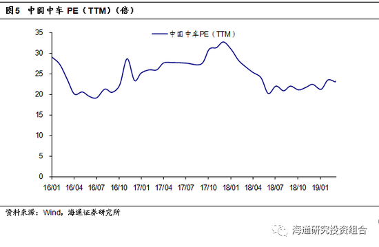 案例分析:中国中车。中国中车是全球规模最大、品种最全、技术领先的轨道交通装备供应商。2018年公司铁路装备和城轨与城市基础设施收入达1553.32亿元,占收入比例达70.90%。从公司铁路装备收入与铁路固定资产投资、公司城轨收入与城轨投资看,具有较大关联,且近年来处于稳定发展阶段,因此从铁路装备龙头公司角度看,在平稳发展期先进轨交装备公司适用PE估值法。