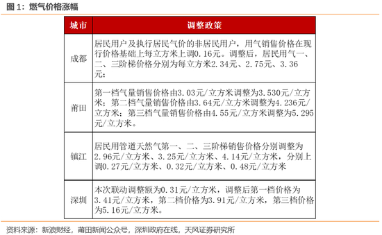 2023年《关于建立健全天然气上下游价格联动机制的指导意见》出台后,据不完全统计,已经有超过130个市县发布了联动机制文件或者通知,推动居民燃气价格上涨。如深圳第一、二、三档价格分别上调10%、9%、6%。
