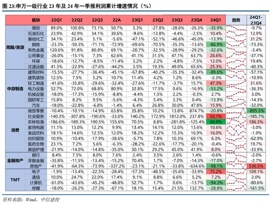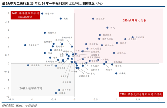进一步以24Q1净利润及营收同比增速计,将申万二/三级行业按业绩增速高低进行三大分档归类:
