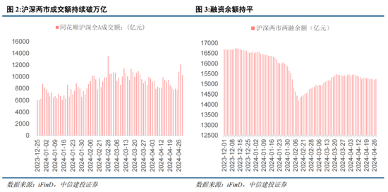 北向资金流入,成交额持续破万亿。本周北向资金净流入22.76亿元。本周成交额持续破万亿元,两融余额变动幅度较小,与上周基本持平,截止至4月29日,两融余额为15255.68亿元。