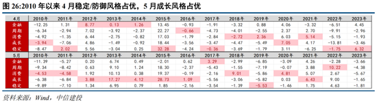 ●短期成长胜率提升,中期红利仍是底仓首选。人民币贬值压力趋缓、外资仓位有望回补及季报落地,5月市场风格短期回摆至成长的概率上升。