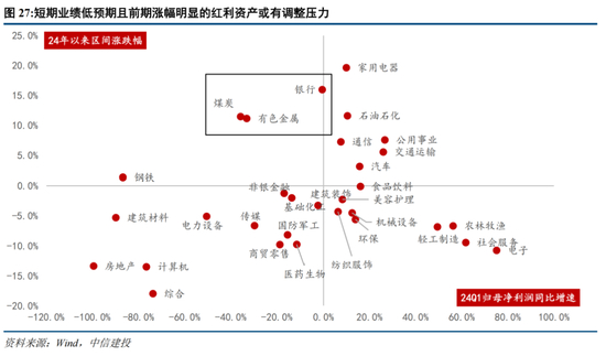 另一方面,从配置、基本面和估值角度看,红利中期行情未完,仍可作为底仓首选,但短期结构或有分化,部分业绩低预期+前期涨幅明显的板块面临调整压力。