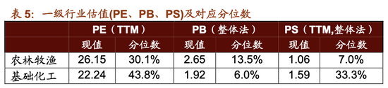 在行业估值方面,本周板块估值多数下跌,其中,轻工制造、房地产和建筑材料涨幅居前,医药生物、国防军工和电力设备跌幅居前。轻工制造板块估值上涨0.52至20.8,处于12.5%历史分位;房地产板块估值上涨1.88至17.3,处于76.3%历史分位;建筑材料板块估值上涨0.89至18.8,处于68.4%历史分位;医药生物板块估值下跌0.51至27.4,处于21.7%历史分位;国防军工板块估值下跌0.71至46.1,处于4.5%历史分位;电力设备板块估值下跌0.39至21.9,处于10.7%历史分位。截至5月17日收盘,一级行业估值排名前五的行业分别是国防军工、计算机、电子、美容护理、医药生物。