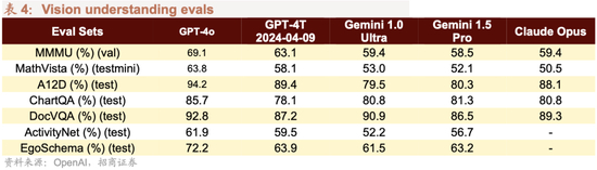 GPT-4o在视觉感知基准测试中达到了最先进的性能。所有视觉评估均为0-shot,包括MMMUn、MathVista和ChartQA在内的0-shot CoT评估。