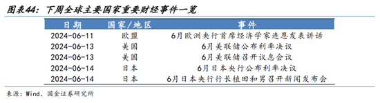 海外权益市场方面,本周(06.03-06.07)全球主要经济体权益指数涨多跌少,仅英国富时(-0.4%)小幅下跌,韩国综合(+3.3%)、纳斯达克(+2.4%)、澳洲(+2.1%)领涨。