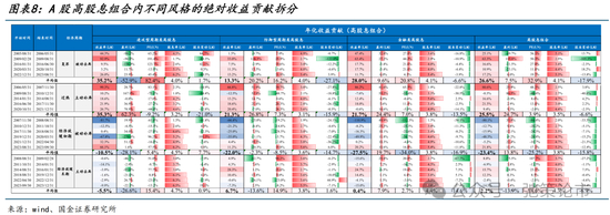 成长领涨在于其盈利贡献遥遥领先(23%);高股息表现不俗,因其盈利收缩较少(-14%)且估值贡献(19%)和分红贡献(4.2%)不低。