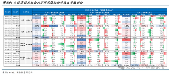 在后续章节中,我们将基于如上收益贡献模型,对A股的高股息组合及主要板块的收益率进行详细拆解复盘,从而挖掘出经济和市场“双周期”框架(详见《策略周报:“双周期”框架体系下:如何有效“捕捉”风格与行业轮动?》)下的高股息策略的收益来源。