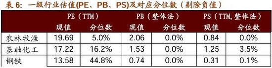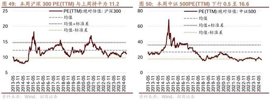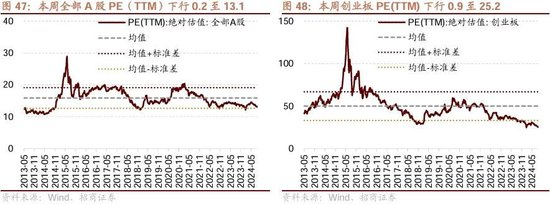 本周全部A股估值水平较上周下行。截至8月23日收盘,全部A股PE(TTM)为13.1,处于历史估值水平的20.6%分位数。创业板PE(TTM)下行0.9至25.2,处于历史估值水平的0.1%分位数。代表大盘股的沪深300指数PE(TTM)与上周持平为11.2,处于历史估值水平的33.7%分位数。代表中小盘股的中证500指数PE(TTM)下行0.5至16.6,处于历史估值水平的5.7%分位数。