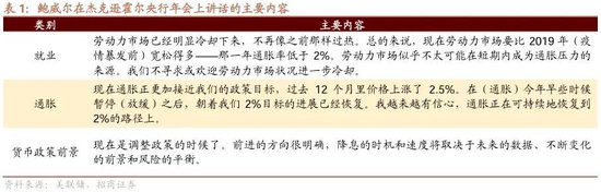 美联储主席鲍威尔在举世瞩目的杰克逊霍尔央行大会上发表重要讲话。关于就业,鲍威尔表示就业市场已经恶化且短期不会再成为通胀推手,同时“美联储不寻求劳动力市场状况进一步冷却”。关于通胀,鲍威尔表示通胀正持续回落至2%目标,只要通胀预期稳定,可以在不需要经济放缓的情况下实现通胀下降。关于货币政策前景,他表示“现在是调整政策的时候了。前进的方向很明确,降息的时机和速度将取决于未来的数据、不断变化的前景和风险的平衡”。