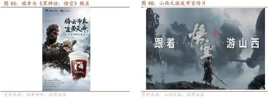 《黑神话:悟空》已经成为大IP,周边商品、手办、旅游等行业有望因此受益。8月19日,瑞幸咖啡与《黑神话:悟空》联名产品“黑神话腾云美式咖啡”上线,并支持购买指定套餐,可限量获赠3D限定海报光栅卡、3款联名杯套等周边,产品一经上线便马上售罄。除了瑞幸,目前还有英伟达、海信电视、联想拯救者、京东和滴滴青桔等企业有计划与《黑神话:悟空》进行互动。此外,IP还辐射到了旅游产业,《黑神话:悟空》在国内36个取景地中,山西省的取景地多达27处,如小西天、玉皇庙、铁佛寺等。为此,山西省文化和旅游厅发布了多条视频吸引玩家前往山西旅游,有望促进当地旅游消费。