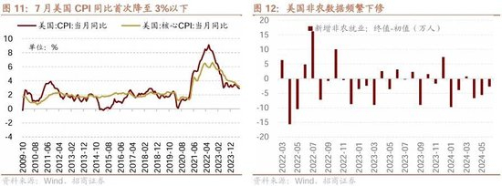 美国7月CPI首次降至3%以下,劳动力市场持续降温。美国劳工部公布数据显示,美国7月CPI 同比 2.9%(前值 3%),核心 CPI 同比 3.2%(前值 3.3%);7 月 CPI 环比 0.2%(前值-0.1%),核心 CPI 环比 0.2%(前值 0.1%),总体来看7月通胀数据符合市场预期,既缓解了衰退预期,也没有影响降息预期。今年以来美国非农数据频繁下修,8月21日,美国劳工部公布的数据显示,从2023年4月到2024年3月,美国的新增非农就业人数比最初统计的数量减少81.8万人,修订后的数据表明美国就业市场一直在稳步降温。