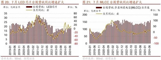 7月多层陶瓷电容(MLCC)台股营收同比增速扩大。7月多层陶瓷电容(MLCC)台股营收161.36亿新台币,同比增速扩大8.26个百分点至17.80%。