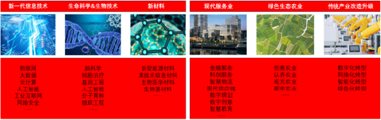 《河北雄安新区规划纲要》指出,雄安新区将高起点布局包括新一代信息技术产业、现代生命科学和生物技术产业、新材料产业、高端现代服务业、绿色生态农业等五大高端产业。积极推进军民深度融合发展,加快传统产业改造升级,建设实体经济、科技创新、现代金融、人力资源协同发展的现代产业体系。