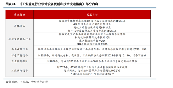“两新”支持范围和支持规模有望再拓宽。7月25日,发改委、财政部联合发布《关于加力支持大规模设备更新和消费品以旧换新的若干措施》,明确资金安排、提出将统筹安排3000亿元左右超长期特别国债资金加力支持大规模设备更新和消费品以旧换新。11月8日蓝佛安部长在人大常委会新闻发布会上表示,结合25年经济社会发展目标,将实施更加给力的财政政策,包括加大力度支持大规模设备更新以及扩大消费品以旧换新的品种和规模等。从7月以来政策实施的效果看,补贴政策明显拉动C端相关耐用品的消费需求,尤其存量更新需求占比较高的领域(如家电效果>家居),推测后续若品类扩充,消费电子是可能方向(广东地区今年特别提出对手机等电子消费产品的补贴、中央层面22年5月曾推出补贴政策);设备更新方面,除中游资本品报废更新补贴外,结合9月工信部发布的《工业重点行业领域设备更新和技术改造指南》, 推动各领域实现高端化、智能化、绿色化也有望成为政策重点导向,或将推动相关软件、自动化设备等增量需求。