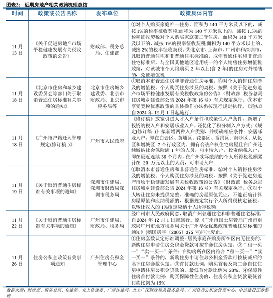 房地产政策方面,一线城市取消普通住宅与非普通住宅的区分标准,广州加速推进收储。近期,中国一线城市北上广深取消了普通住宅与非普通住宅的区分标准,并出台了相应的税收优惠政策以促进房地产市场健康发展。北京、上海、深圳和广州相继发布了相关通知,明确了取消标准并加大住房交易税收优惠力度,旨在降低改善型住宅的交易成本,活跃二手房市场,加快购房需求的释放。(1)在居民需求方面,广州市提出了新增入户类别,哈尔滨延长了公积金贷款的年龄和额度上限,广州调整了住房公积金贷款的认定标准。广州市拟新增“安居乐业入户”和“投资纳税入户”两种类别,哈尔滨则放宽了公积金贷款条件,提高了多子女家庭的贷款额度上限。广州住房公积金管理中心也调整了贷款政策,对无房家庭和符合特定条件的家庭提供更优惠的贷款认定。(2)住房供给方面,广州安居集团宣布将收购90平方米以下的存量商品房作为保障房,这一措施将有助于扩大保障性住房的供应,满足市民的住房需求。收购遵循市场化、法治化原则,并优先考虑整栋或整单元未售的楼栋项目,以实现封闭管理。
