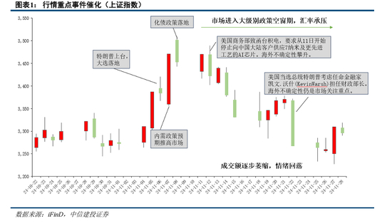 近期市场从盈利预期、流动性预期和风险偏好层面都呈现一定改善迹象。我们认为,前期政策发力的领域已初见成效,且预计12月重要会议政策部署将扩围加力。海外方面,市场集中主题交易“特朗普2.0交易”渐渐稳定,美元、美债利率见顶回落,人民币兑美元汇率稳定,特朗普宣布先加征10%关税好于市场悲观预期,从配置季节性看,岁末年初险资和其他中长期资金流入也值得期待。