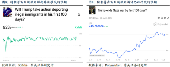 特朗普2.0政策后续观察点:百日新政。1月20日,新总统将正式宣誓就职。国会将在1—3月陆续批准重要内阁官员的任命。接下来重点关注1月20日—4月29日总统“百日新政”。参考过往经验,百日新政内总统将优先推行重要且紧急、仅需要总统行政令的政策,如移民、外交与去监管等,以及关税的初步策略。此外,关注预计于3月发布的FY2026总统预算案中减税政策的线索。考虑到特朗普第二任期提名的部分官员缺少丰富的行政经历,我们还建议关注期间特朗普与内阁官员之间的配合度,以辅助判断特朗普2.0政策推行的顺畅程度。