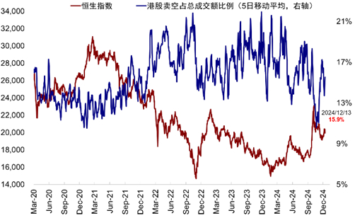 图表:港股卖空成交占比小幅回升至15.9%