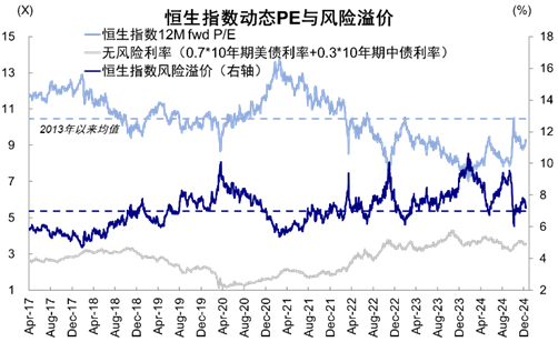 图表:恒生指数风险溢价自7.55%快速回落至7.21%