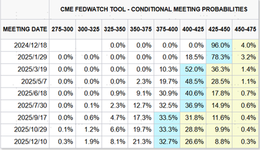 图表:CME利率期货隐含12月降息概率升至96%
