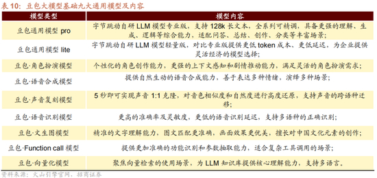 ▶ 模型层:此次发布会中,3款火山方舟,扣子1.5,HiAgent针对于企业级平台的应用场景进行了全面的升级,性能提高,门槛降低以推动大模型向端侧落地。豆包大模型在原有9大通用模型上,本次大会发布了全新的视觉理解模型,为豆包大模型家族继续增加新鲜血液。