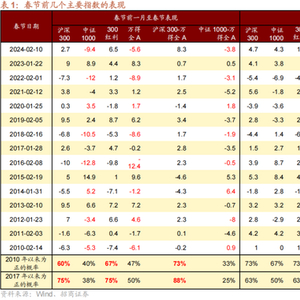 一年之计在于春,市场重要的风格和转折也往往出现在春节前后。例如2016年、2019年、2024年的春节后,市场结束了下跌趋势,回到上行趋势;而2018年、2021年春节后,权重指数结束了上行趋势进入下跌趋势。而历史上多次风格的大切换,如2013年春节后从价值切换为成长;2016年春节后逐渐从小盘切换为大盘,2019年春节后从大盘价值转向大盘成长,2021年春节后,市场从大盘成长转为小盘风格占优。因此,每年春节前后都需要关注大的风格切换的可能性,是否要进行重大仓位和风格调整,很多时候都需要在春节前后做出决定。