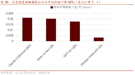 视觉理解模型进入厘时代。豆包视觉理解的输入价格为每千tokens 0.003元,比行业平均价格降低85%,相当于一块钱可以处理284张720P的图片。同时火山引擎还将提供更高的初始流量,RPM达到了15,000次,TPM达到120万,让企业和开发者用好视觉理解模型,找到更多创新场景。