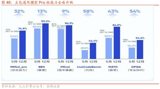 豆包通用模型pro完成新版本迭代。新版本综合任务处理能力较5月份提升32%,在推理上提升13%,在指令遵循上提升9%,在代码上提升58%,在数学上提升43%,在专业知识领域能力提升54%,多个指标已经与GPT-4o对齐。同时,豆包pro能力升级之外进一步结合音乐、文生图、3D模型等多模态能力,多模态能力的整合为通用大模型能力的重要进阶。