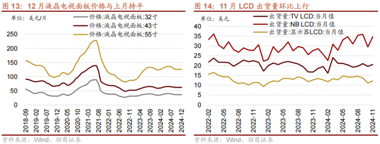 11月LCD出货量环比上行。11月份TV LCD出货量为20.60百万个,月环比上行5.10%,同比上行23.35%;LCD显示器出货量为12.20百万个,月环比上行9.91%,同比下行3.94%。