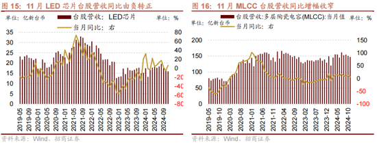 11月多层陶瓷电容(MLCC)台股营收同比增幅收窄。11月多层陶瓷电容(MLCC)台股营收147.23亿新台币,同比增幅收窄5.16个百分点至5.80%。