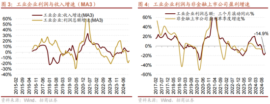 总结来看,11月份工业企业盈利显示出积极信号,尽管累计同比降幅仍在扩大,但单月降幅在高基数背景下仍有改善。拆分结构来看,利润率回升,成本和利润均下行;量价同步改善。行业方面,三个月滚动来看,中游设备、消费服务、资源品等降幅均收窄,中游设备和必选消费增速相对较高。细分领域中高新技术制造业仍然是增长的重要引擎,“两重”、“两新”效果显著,光电子器件制造、可穿戴智能设备制造、锂离子电池制造、专用设备制造业、化工、家电等实现较高增速。目前价格端拐点初现,带动利润率边际回升,后续随着政策效果的逐渐显现,有望推动后续盈利的持续改善,重点关注消费服务和高新技术等领域,如专用设备、智能穿戴设备、家电等业绩改善的机会。