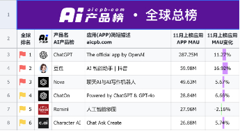 图13:豆包APP在11月全球AI产品榜中排名第二 |