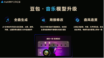 火山引擎对豆包文生图模型和音乐模型能力升级。1)豆包文生图模型:模型在通用性、可控性、高质量方面实现突破,并新增一键海报和一键P图功能,可根据用户简单指令对图片进行精准编辑,并加强了对文字细节的指令遵循能力。2)豆包音乐模型:可根据用户简单描述或上传图片,生成时长3分钟的包含旋律、歌词和演唱等元素在内的音乐作品,包括前奏、主歌、副歌、间奏、过渡段等复杂结构,并支持局部修改功能,在针对部分歌词修改后仍能在原有旋律的节奏框架内适配。