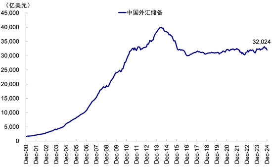 图表:截至2024年底,中国外汇储备达3万亿美元