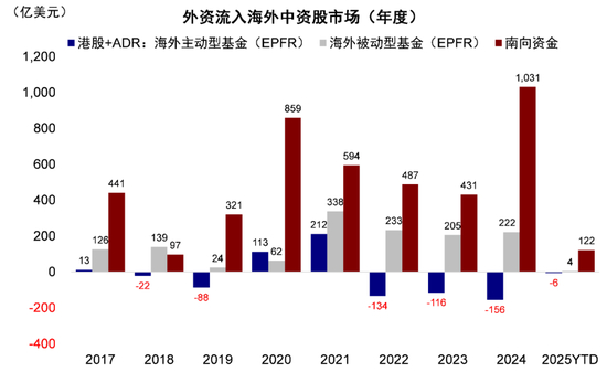 图表:2024年南向资金净流入超过1000亿美元