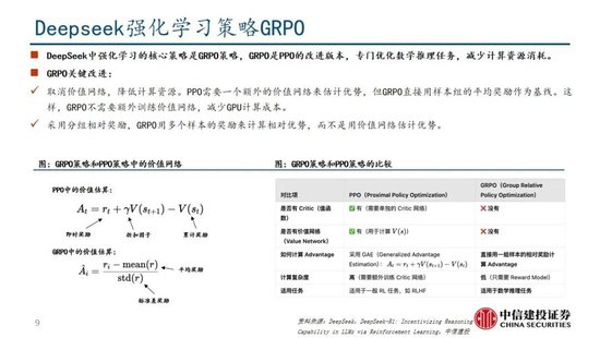 我们认为,DeepSeek-V3/R1系列模型的核心突破在于1)技术及架构升级显著优化模型训练成本,即工程优化了MoE模型架构,预计未来各厂商仍将围绕MoE模型进行注意力头的架构优化;2)组相对策略优化算法(GRPO)实质上仅依赖模型自身近些迭代,实现了“反思能力”;3)提供了一种具体可行的“RL Scaling law”方向,各厂商或将跟进并继续探索其他方向;4)蒸馏使小模型具备较强逻辑推理能力,有望促进中小型开发者推出相关应用。