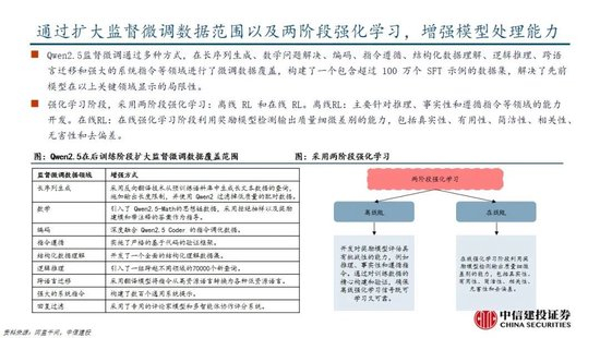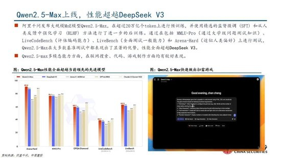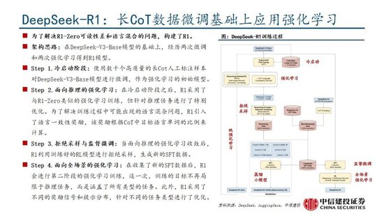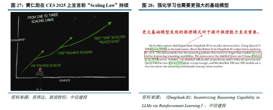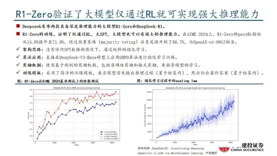 我们认为,Scaling Law仍有效,同时RL技术的不断迭代为模型能力的规模化扩张带来了新的方向。特别是DeepSeek通过架构和技术创新,提出了纯RL和分阶段的模型训练方法,并实现了较好的性能表现。预计各厂商将陆续跟进DeepSeek的算法方向,并不断对架构进行调整,以探索出更为理想的模型优化方式。