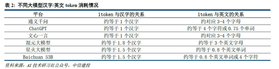 需要注意的是,不同模型token切分方法可能不同,通常1 token可对应1-2个中文汉字,或对应3-4个英文字符,或0.75个英文单词。
