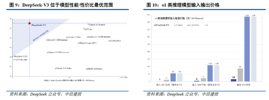 DeepSeek在保持模型优异性能指标的同时大幅降低训练和推理成本。2025年1月20日,DeepSeek-R1发布,以 DeepSeek-V3 模型为基础,通过结合大规模强化学习、专家模型架构、FP8混合精度等技术手段降低训练成本,同时具备深度思考能力,在数学、代码、自然语言推理等多个任务上性能比肩 OpenAI O-1217 模型。DeepSeek-R1发布后,在保持较为优异的性能指标基础上,市场对于其在训练和推理端的低成本尤为重视。DeepSeek-V3 使用 2048 块 H800 GPU 完成了 6710 亿参数的训练,训练成本为 557.6 万美元,DeepSeek-R1模型的每百万输出 tokens 为 16 元,均显著低于同等水平的模型成本。